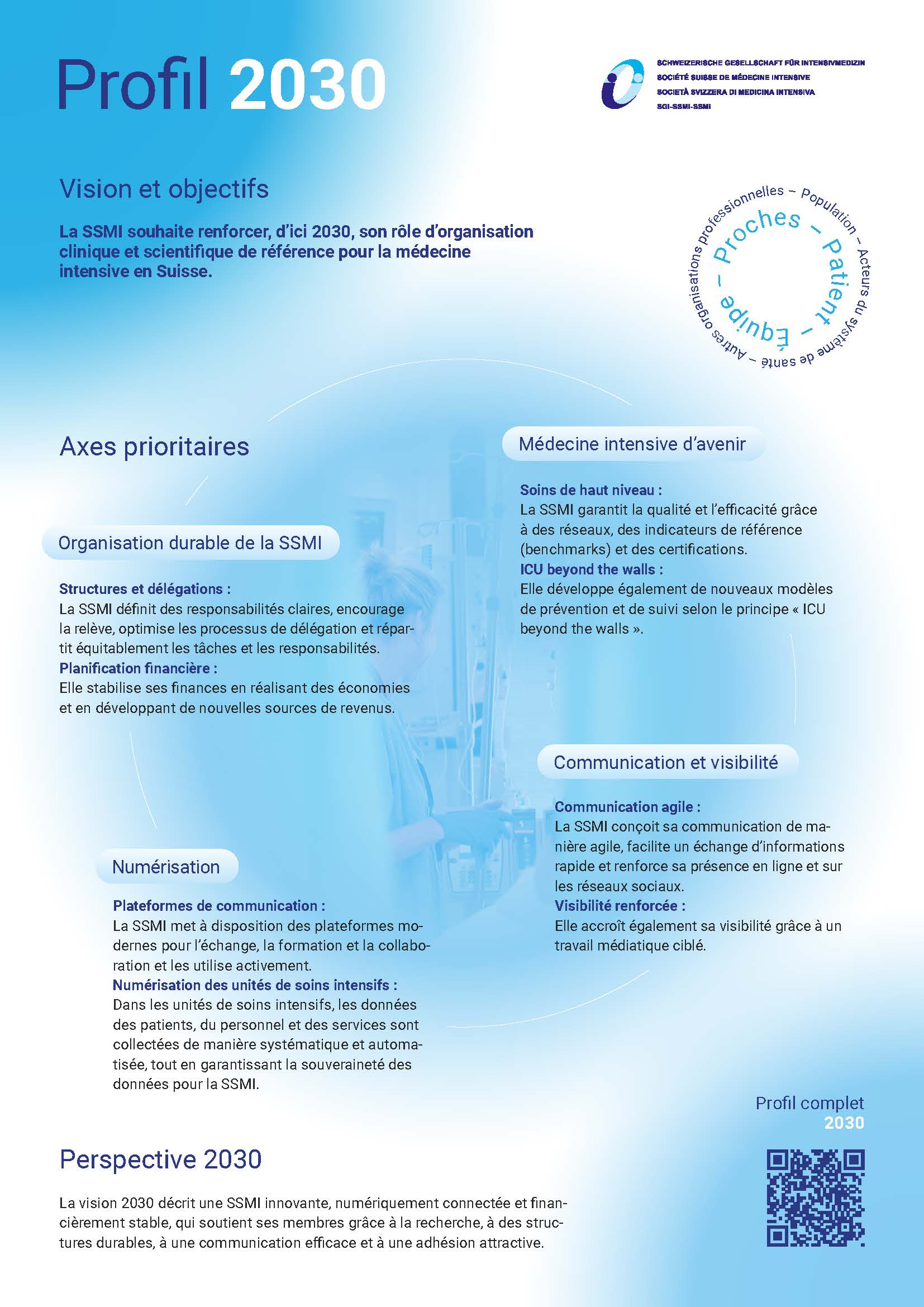 D’ici 2030, la SSMI vise à renforcer son rôle en tant qu’organisation clinique et scientifique de référence pour la médecine intensive en Suisse.
